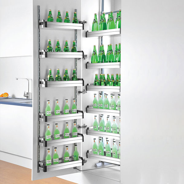 - Đặc điểm: Với thiết kế độc đáo, sản phẩm ra đời nhằm tận dụng tối đa những khoảng diện tích thừa hay góc chết của tủ bếp mà thường bạn sẽ bỏ qua gây lãng phí. Ngày nay, đối với mẫu tủ thiết kế hình chữ L, G, U sẽ tạo ra nhiều góc chết, bạn cũng không còn phải lo ngại nữa vì đã có những mẫu thiết kế phụ kiện tủ bếp đa năng này