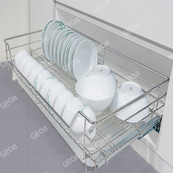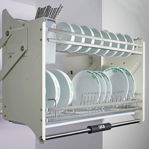 - Đặc điểm: Giá bát nâng hạ được coi là một trong số sản phẩm ưu việt của GRÖß được khách hàng lựa chọn nhiều bởi tính đa năng của sản phẩm. Giá bát được thiết kế dạng tay cầm nâng hạ chất liệu inox sus304 chắc chắn, có độ bền cao. Mặt khác, sản phẩm thiết kế dạng nan, 2 tầng thông thoáng, có khay hứng nước giúp cho tủ bếp luôn khô thoáng không bị ẩm mốc