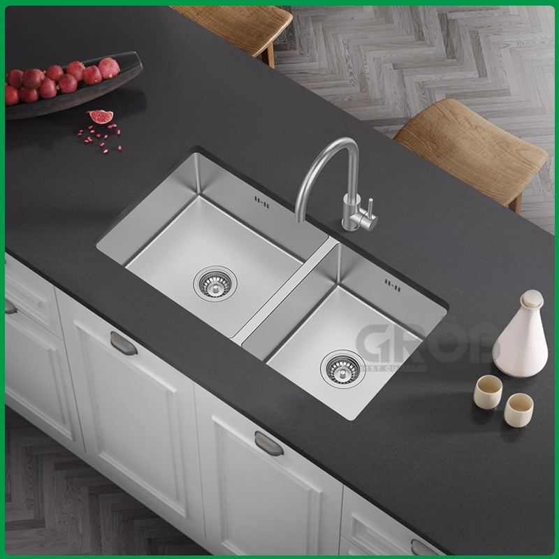 Chậu rửa bát đôi của thương hiệu Grob là sản phẩm tiện ích trong việc rửa chén bát nhờ thiết kế 2 ngăn rửa rộng rãi mang đến cho bạn sự thoải mái trong quá trình sử dụng. Bên cạnh đó, sản phẩm còn được làm từ chất liệu cao cấp, bền đẹp cùng nhiều tính năng tiện ích và dễ dàng vệ sinh, đảm bảo mang lại trải nghiệm tốt nhất cho người dùng.