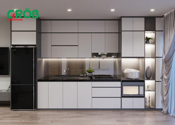 + Tận dụng mọi tối đa mọi góc chết, diện tích thừa của căn bếp, đồng thời tạo cảm giác diện tích căn bếp thêm rộng rãi, thoáng mát