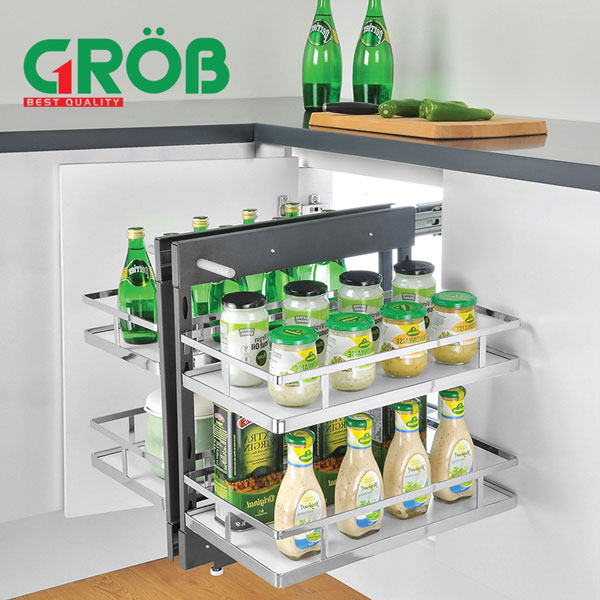 Góc tủ bếp luôn là những góc thừa và khó sử dụng nhất, thông thường đây chính là những nơi ảnh hưởng lớn tới thẩm mỹ của căn tủ bếp nhà bạn. Tuy vậy, hiện đã có nhiều phụ kiện ra đời nhằm tận dụng tối đa hết những góc chết của tủ bếp mà vẫn đảm bảo không gian bếp được gọn gàng. Với thiết kế đa dạng gồm 3 dạng chính như: kệ liên hoàn âm tủ, kệ liên hoàn bắt cánh, mâm xoay, khách hàng có thể lựa chọn tùy theo nhu cầu và sở thích của mình