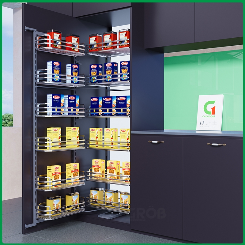 Dễ dàng tìm kiếm và sử dụng: Thiết kế ray trượt linh hoạt giúp bạn dễ dàng tiếp cận tất cả các vật dụng mà không cần phải lục lọi sâu bên trong tủ.
